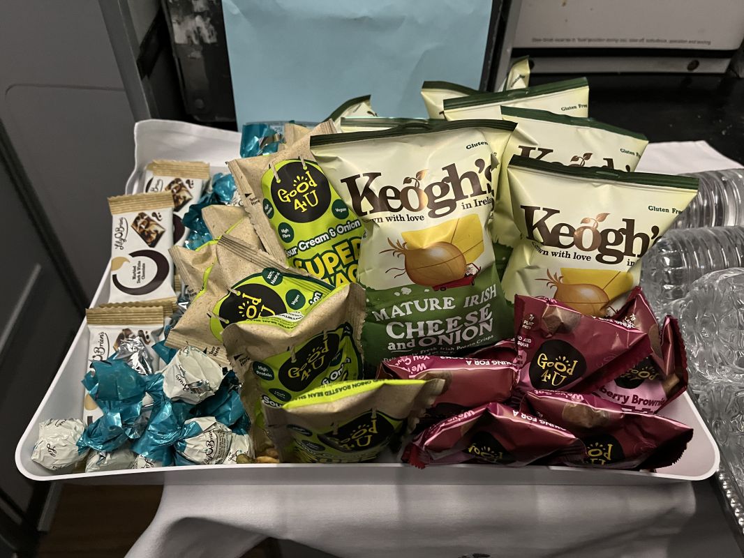 The snack basket featured plenty of Irish snacks such as Keogh’s crisps, Lily O’Brien’s chocolates, and Good 4U snacks. I tried a couple of bits of chocolate, but that’s about it as I was quite full.