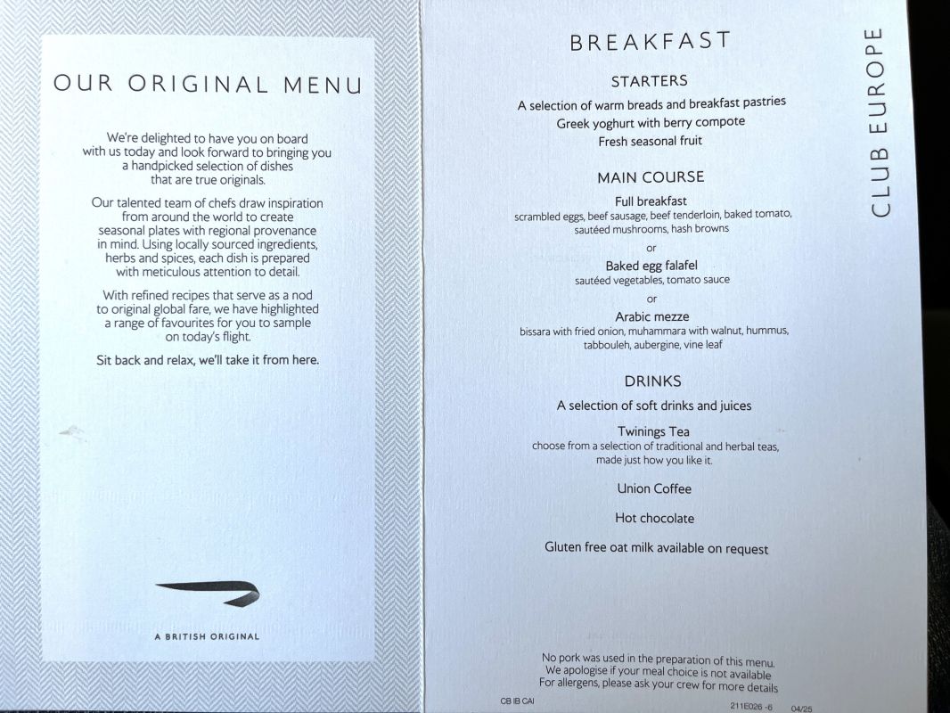 BA401 – Cairo to London Heathrow (CAI-LHR)