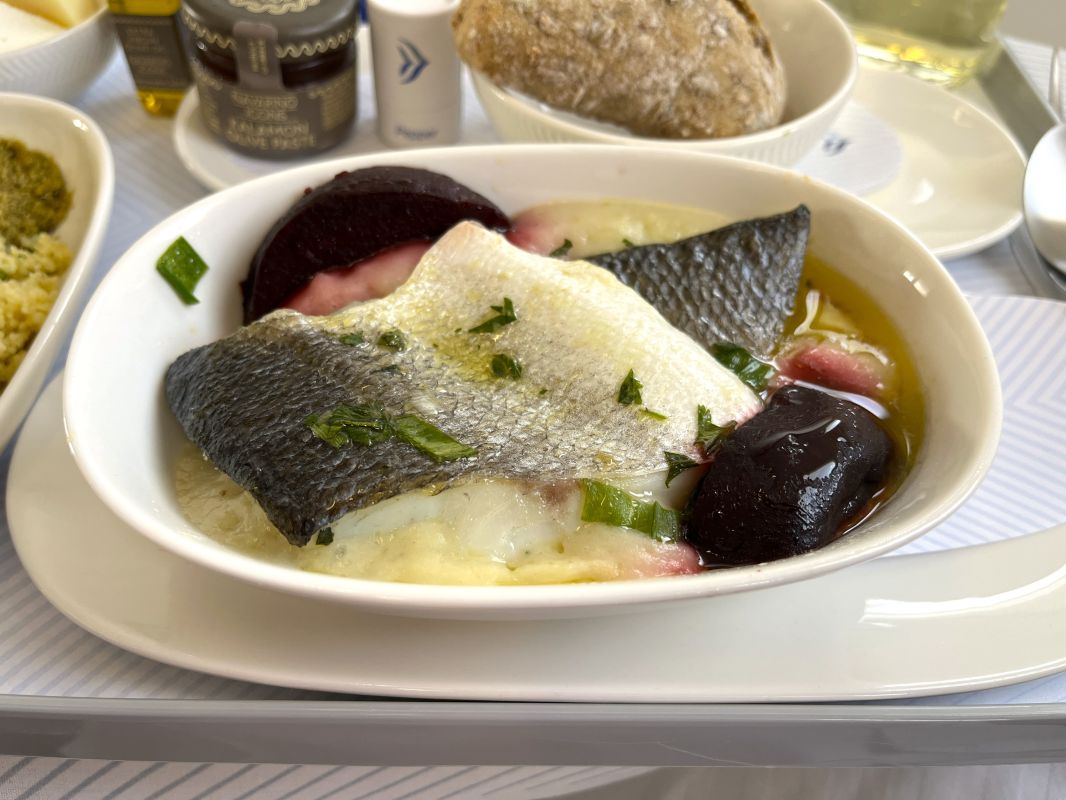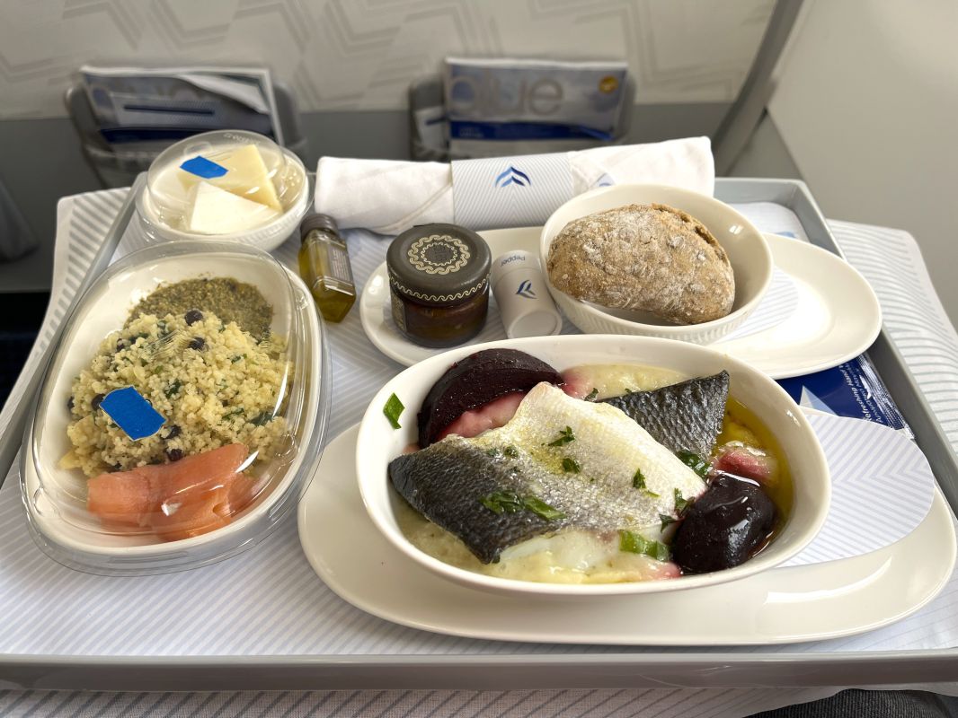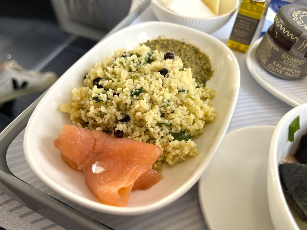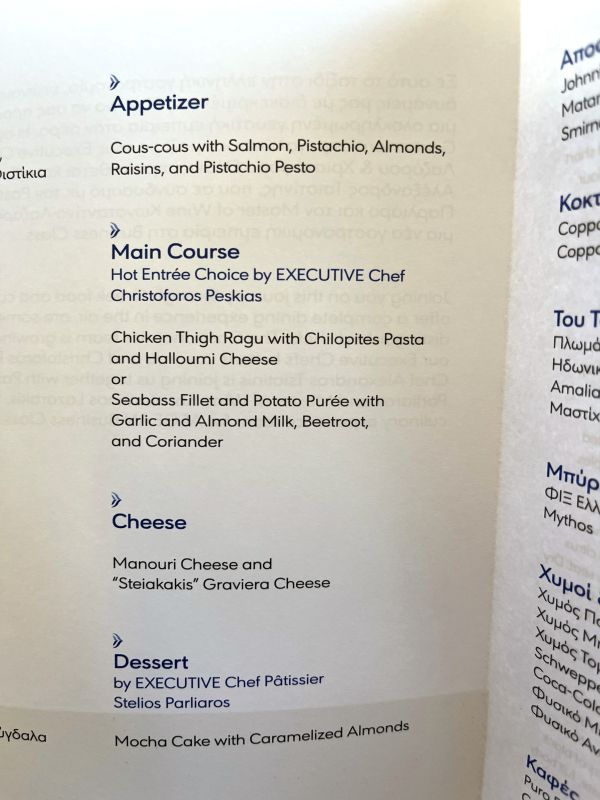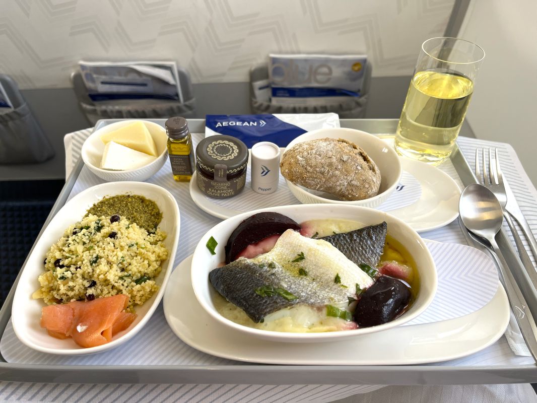 Aegean Airlines has some of the best inflight dining in Europe, though I think SWISS still has the edge. As I’d enjoyed the food on my previous flight, I knew I was in for quality so I went for the seafood option.