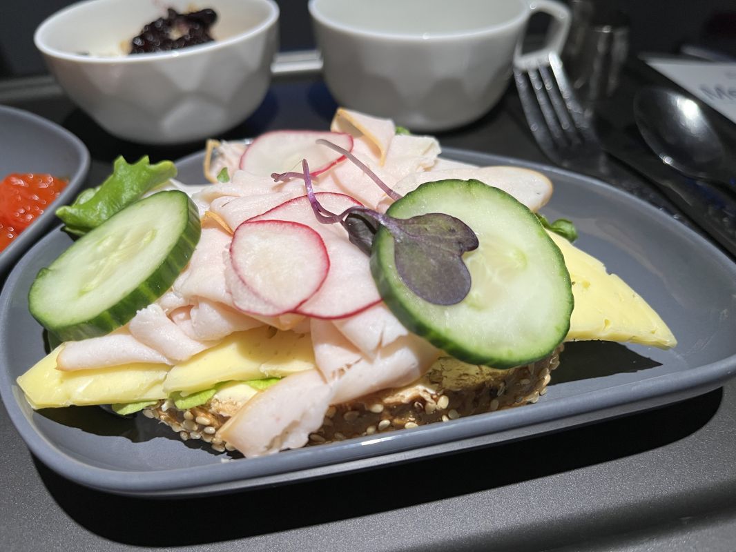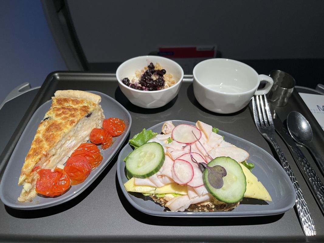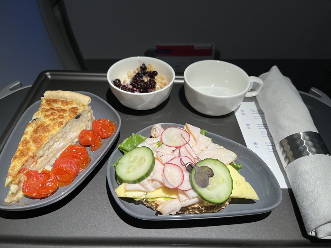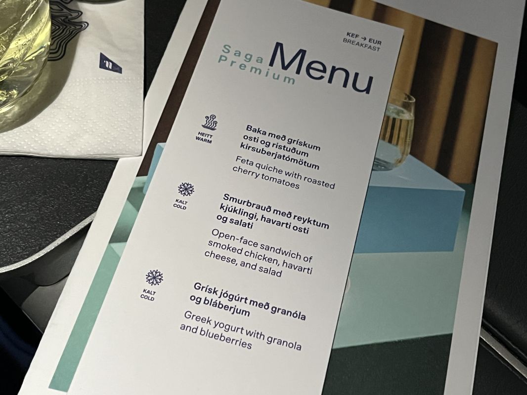 Icelandair Saga Premium business class is pretty good. I quite liked the Bluetooth pairing for the sound, and the quality of the video screen. Breakfast was quite good, certainly in the upper echelon of short to medium haul business class meals for me.