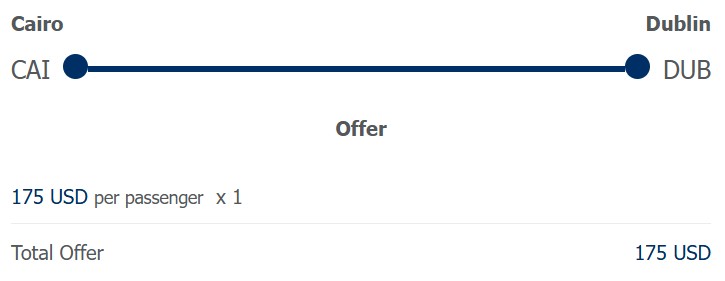 I’m due to fly from Cairo to Dublin soon on a work trip booked in economy. As soon as I noticed that Egyptair has bid upgrades, I had a look to see if I could put in an offer. I found the minimum bid for the outbound flight too expensive, but the return seemed reasonable, so I put in the minimum bid of US$175. For a six hour flight, that is quite decent in my book.