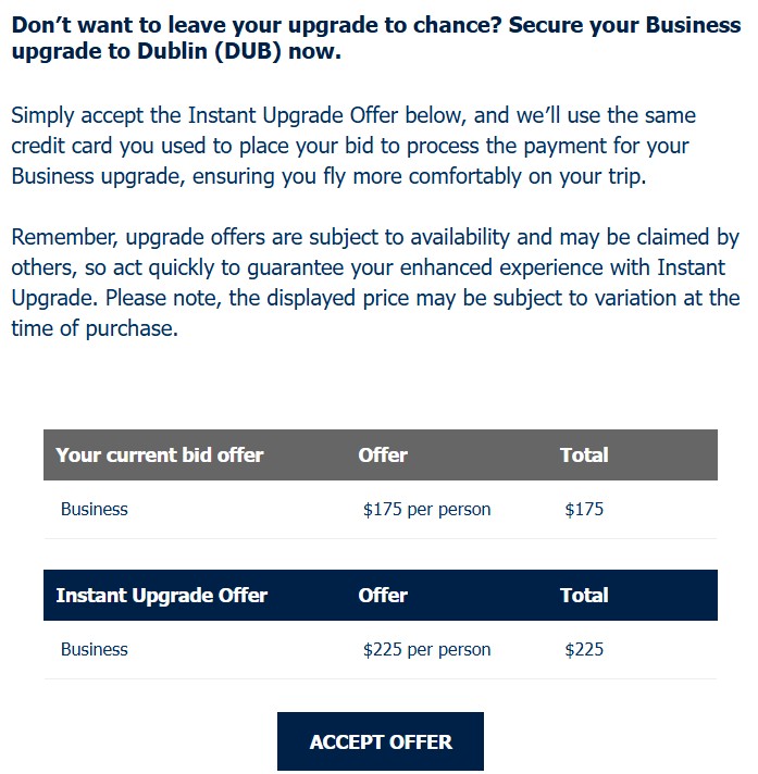 What do you think? Would you have taken the instant upgrade or waited on the outcome of the bid? Thank you for reading and if you have any comments or questions, please leave them below.