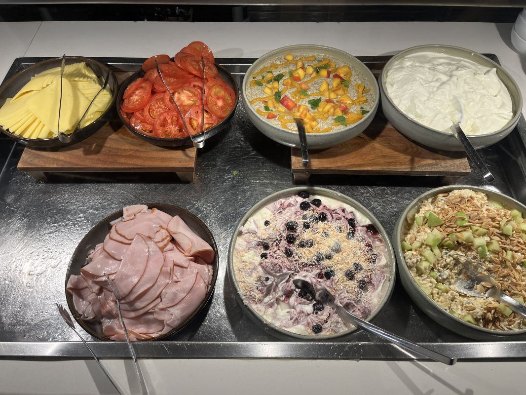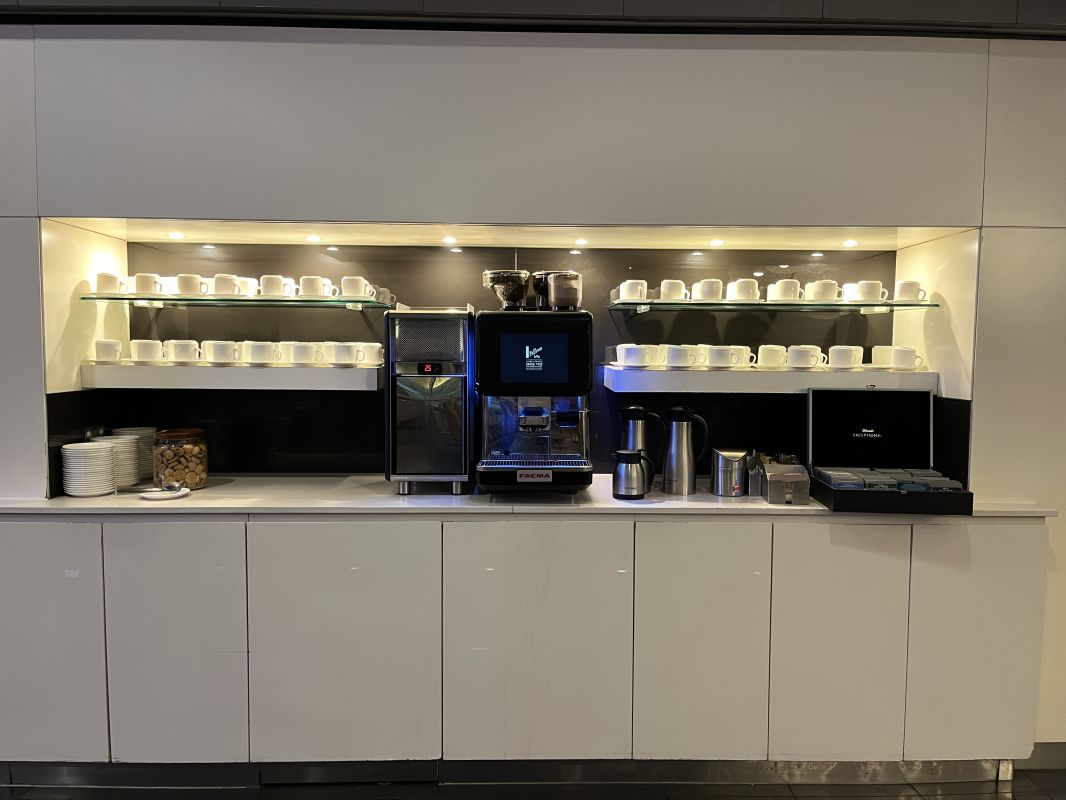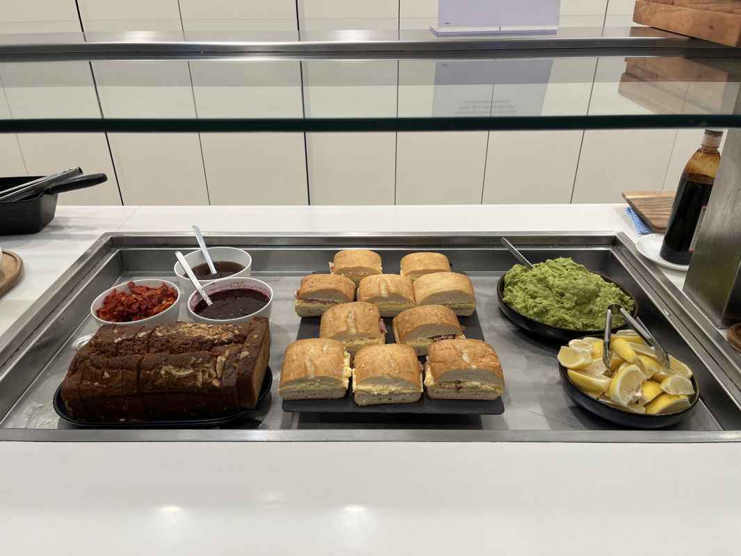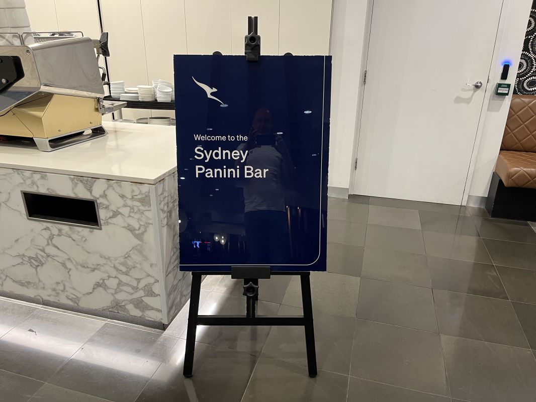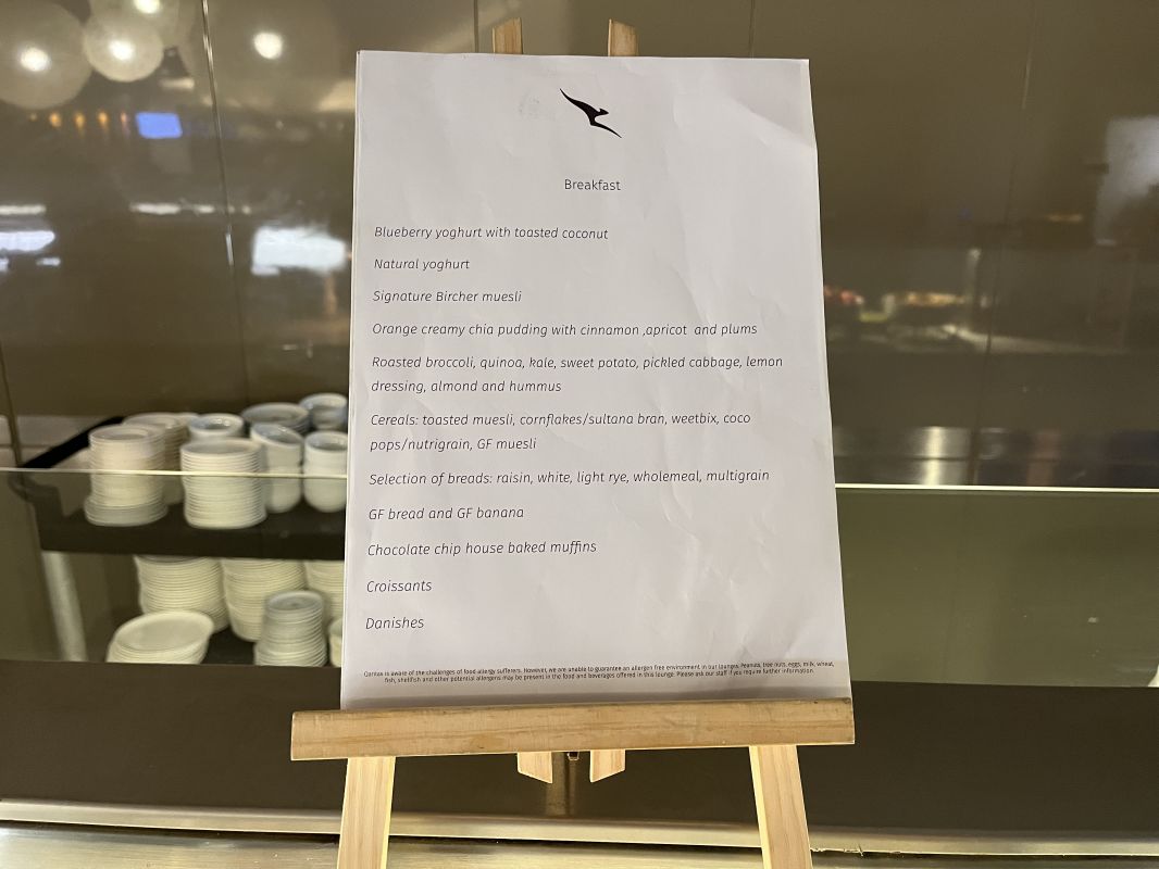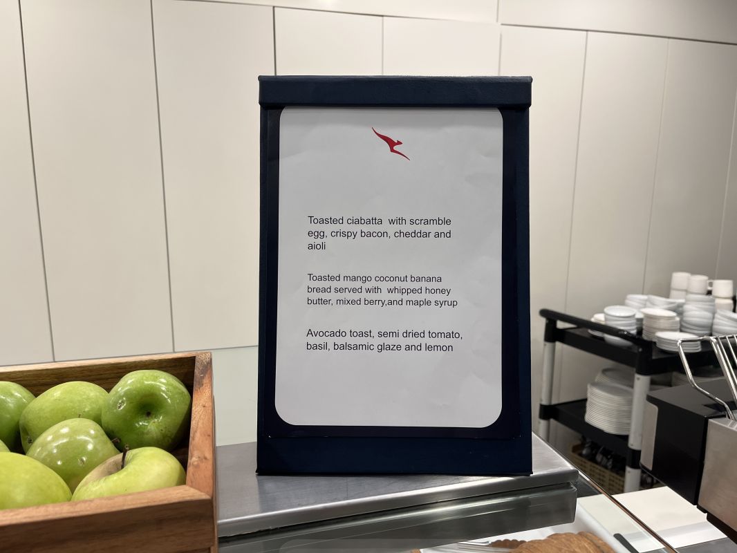 Each Qantas Domestic Business lounge has a themed area for food and in Sydney it’s the Panini Bar. On offer this morning were toasted ciabatta with scramble (sic) egg, crispy bacon, cheddar and aoili, or toasted mango coconut banana bread served with whipped honey butter, mixed berry and maple syrup, or you could have avocado toast, semi dried tomato, basil, balsamic glaze and lemon.