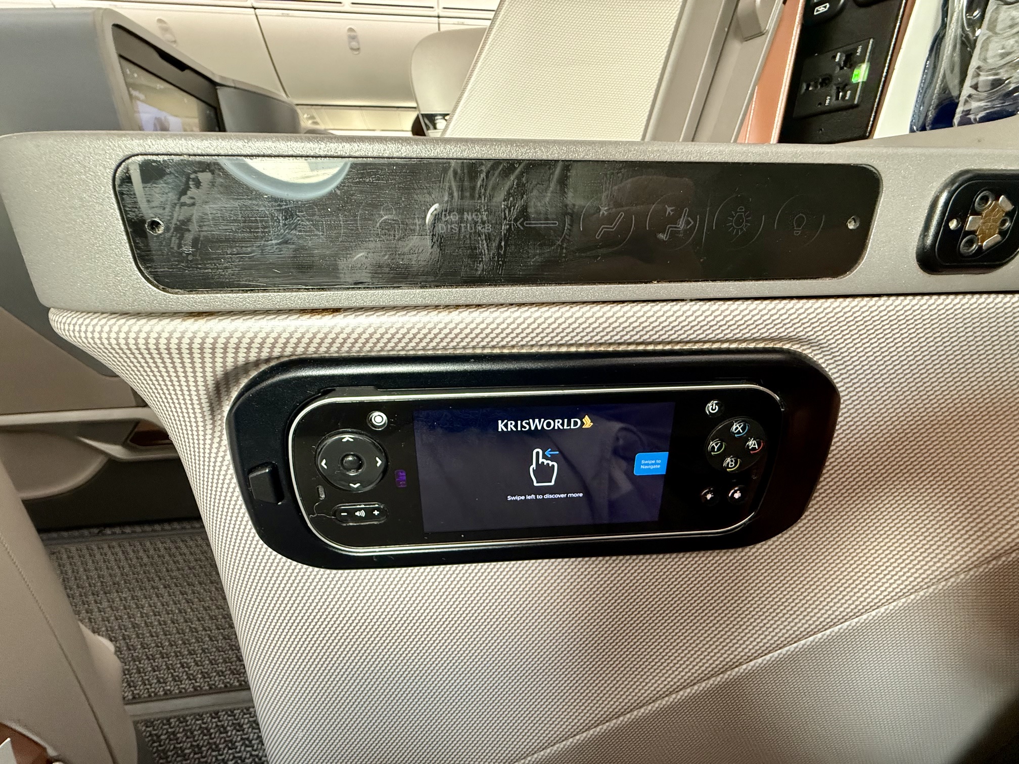 I did notice that the finishes were not as luxurious as the 777 or A350 ULR, which I suppose makes sense, as those are for the long-haul flights, and this one is for shorter flights. But my cubby was a bit scuffed up and did not close easily.