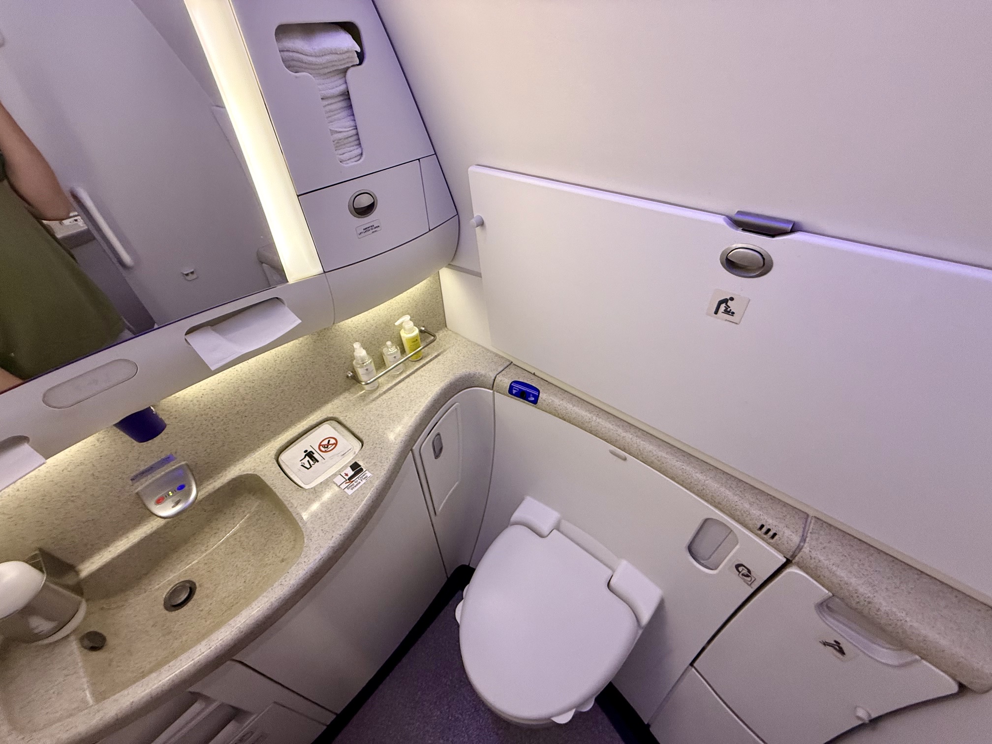 Business Class has 2 lavatories in the front of the aircraft, and they were kept tidy during my visit.