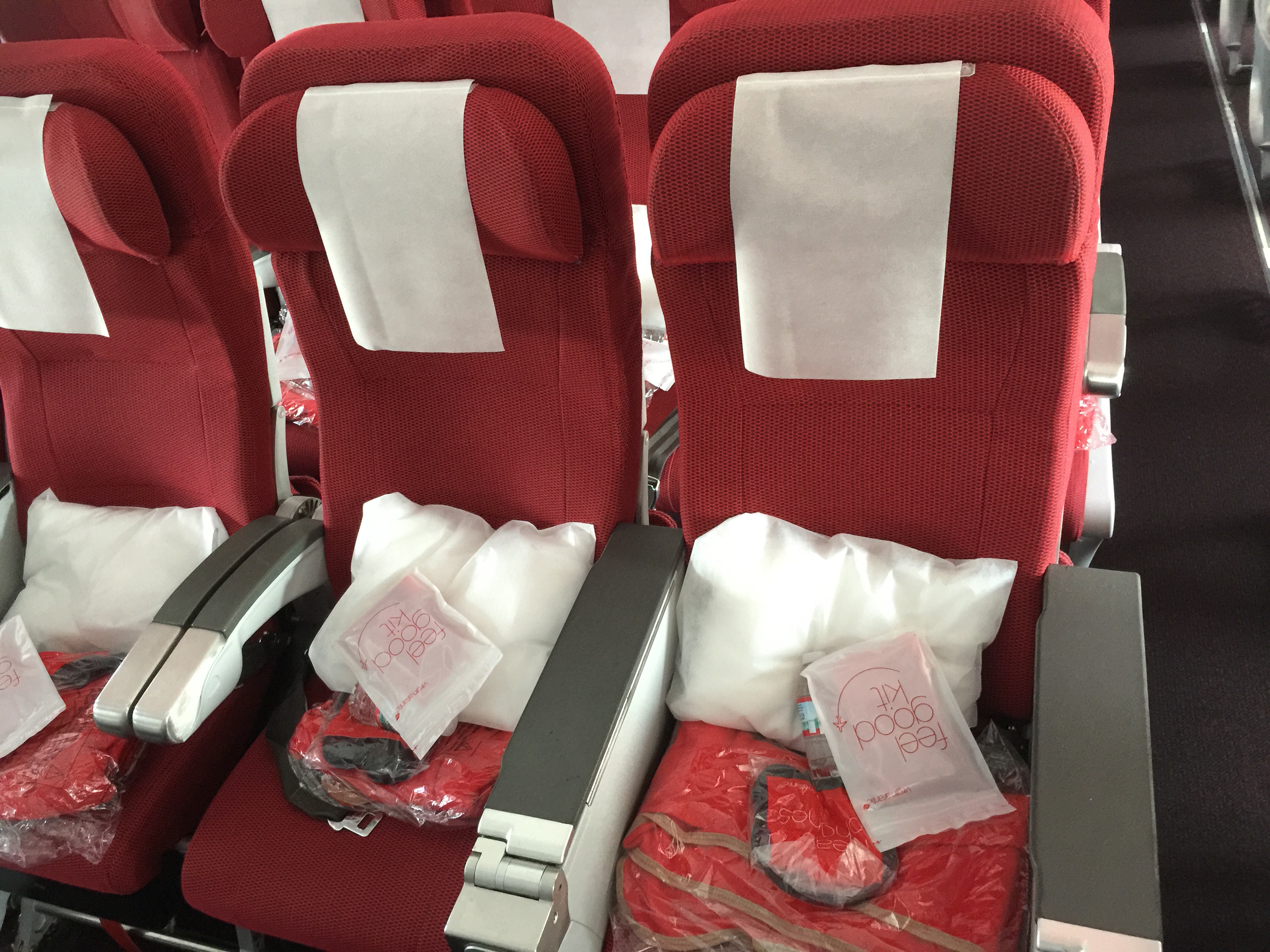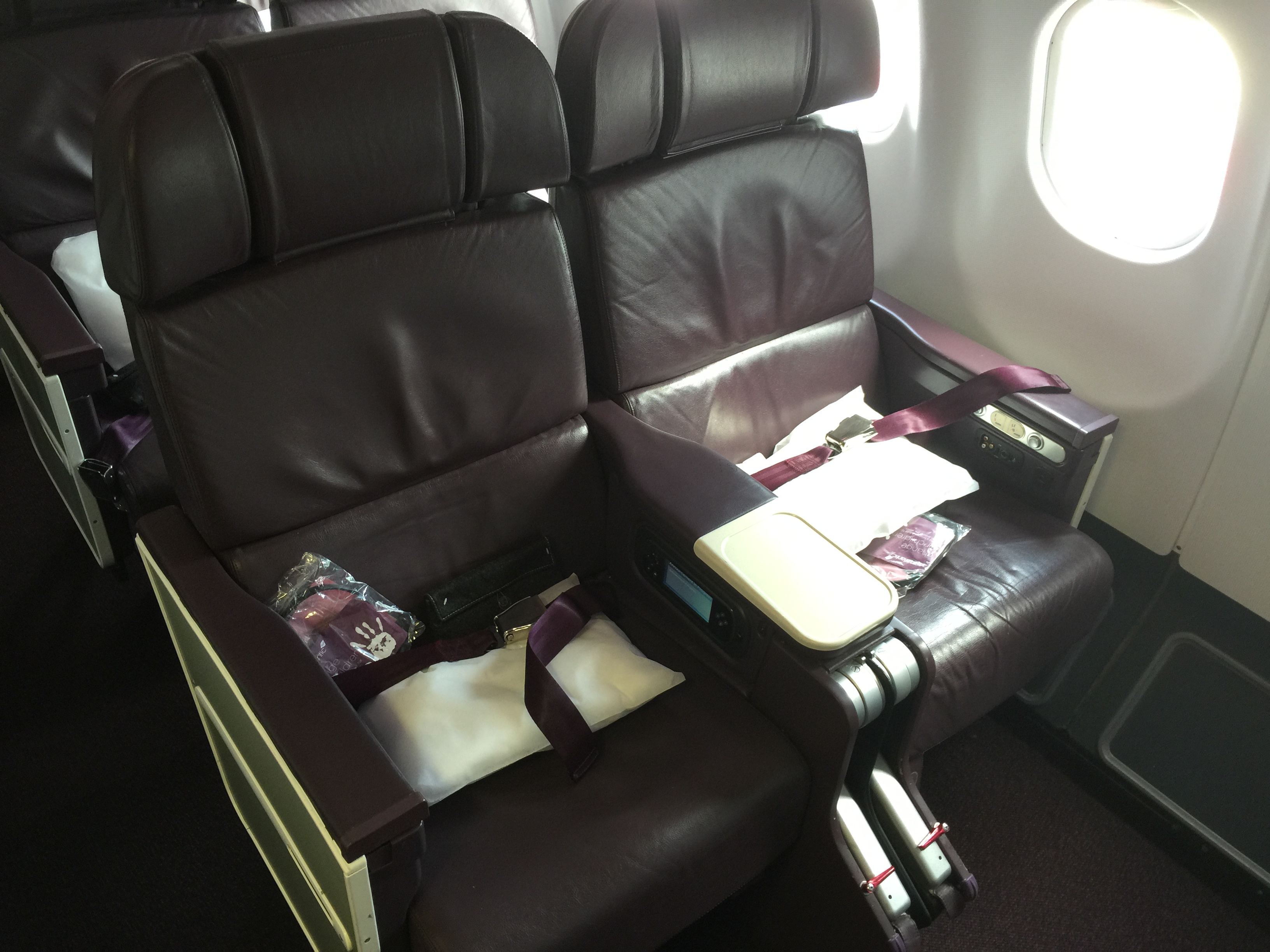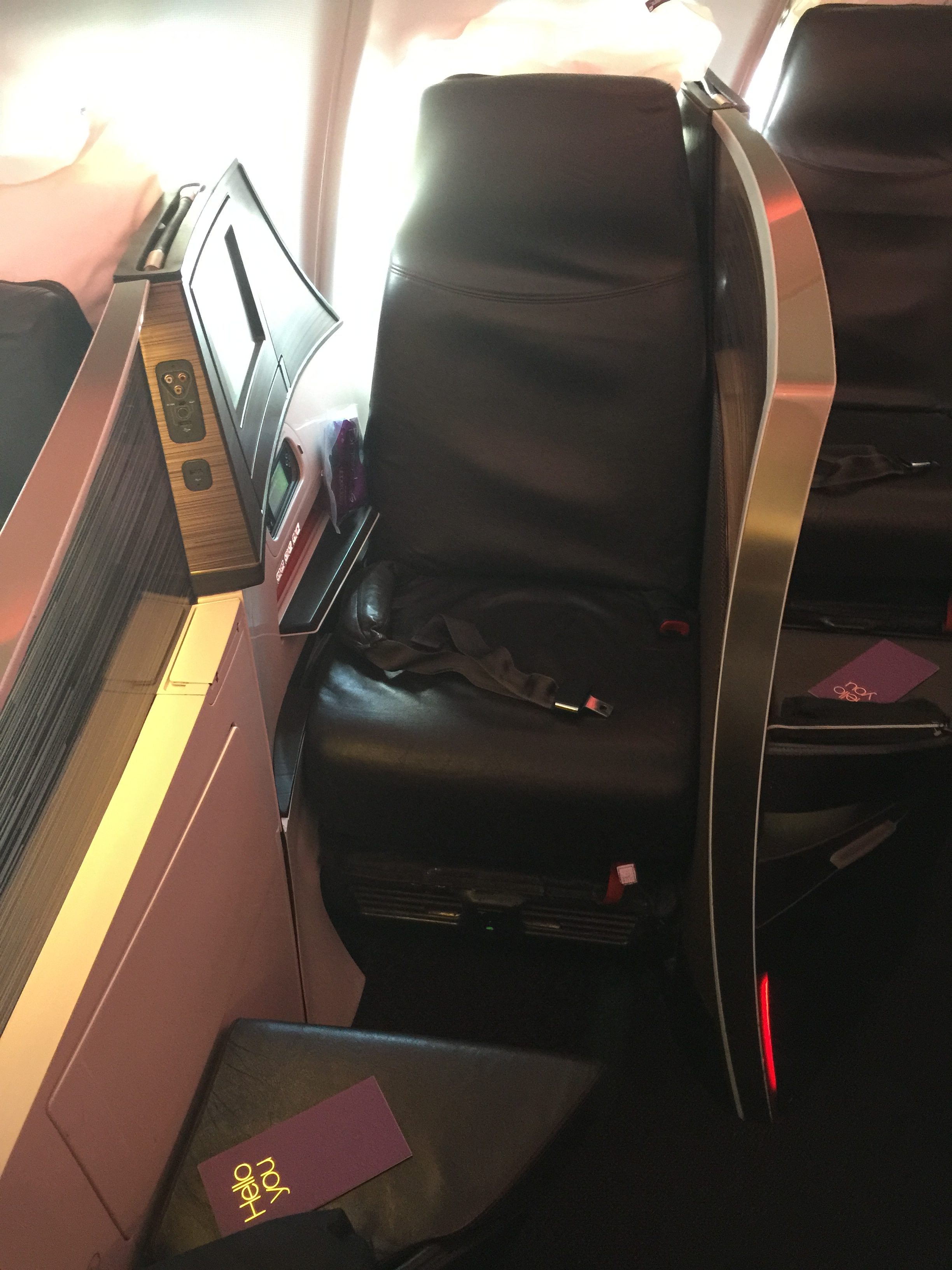 Once I was done looking at the rest of the cabin, I came back to my seat. They are the same ones that Air New Zealand has on their aircraft. The seats are in a herringbone configuration, and have a small ottoman. I found the seats to be very exposed, and it was nearly impossible to see out of the window. I would not recommend flying this seats if you are an avid AVGeek, since you can’t see much during takeoff and landing.