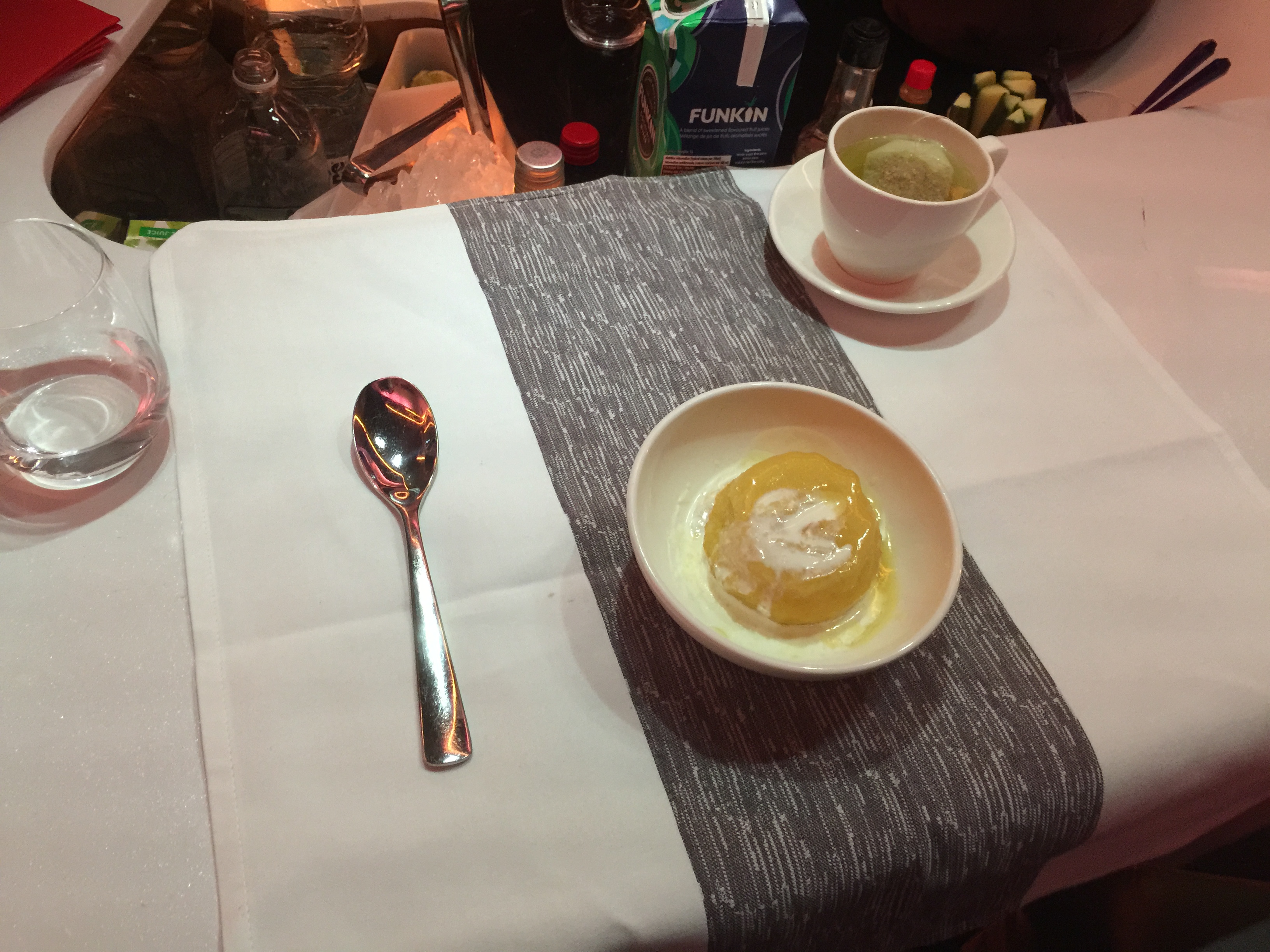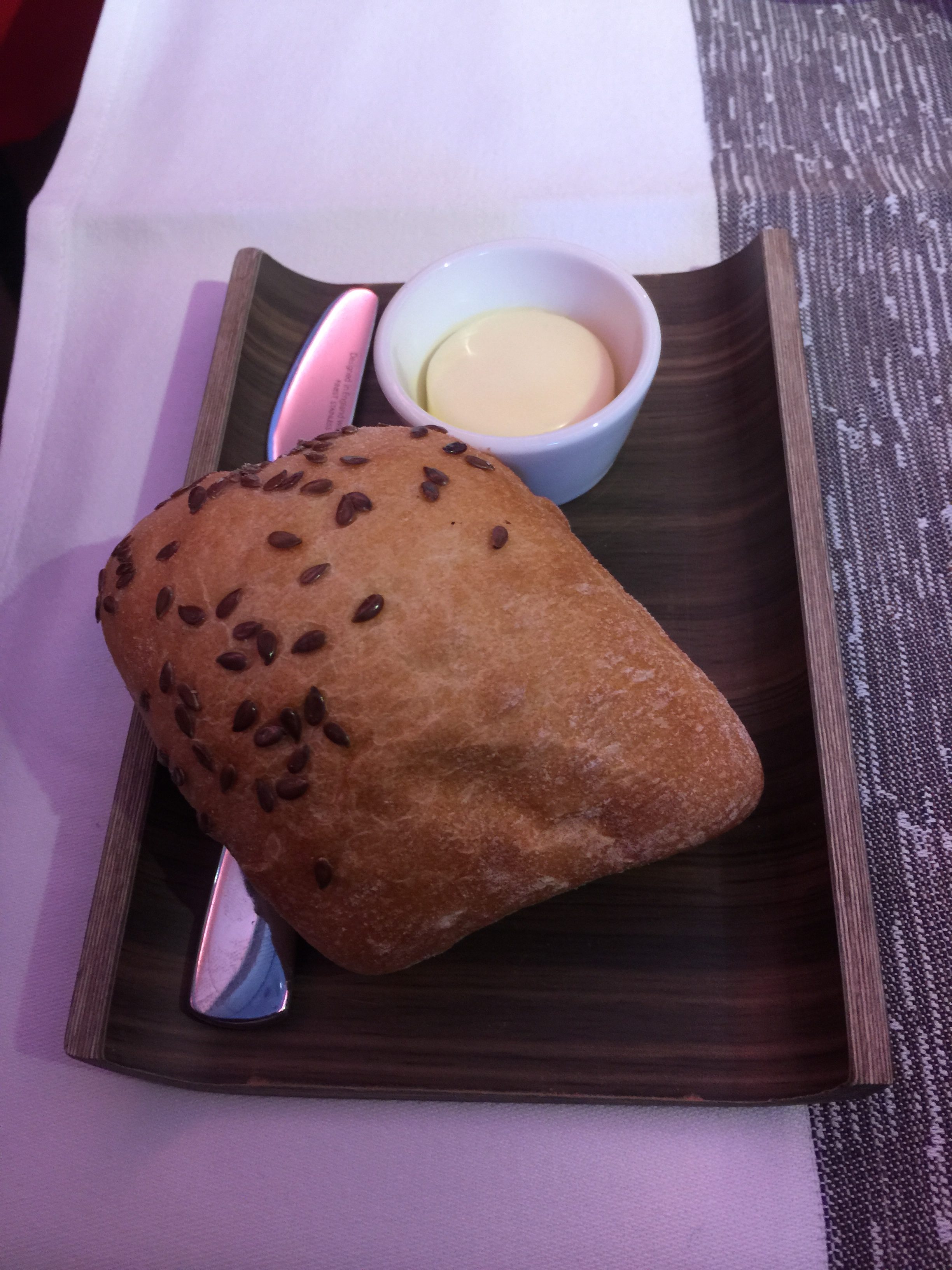 As soon as the cabin crew was given the green light to being service, they headed to the cabin to take menu orders. They also came by and offered chips (crisps for my non-American readers) as a pre-meal snack.