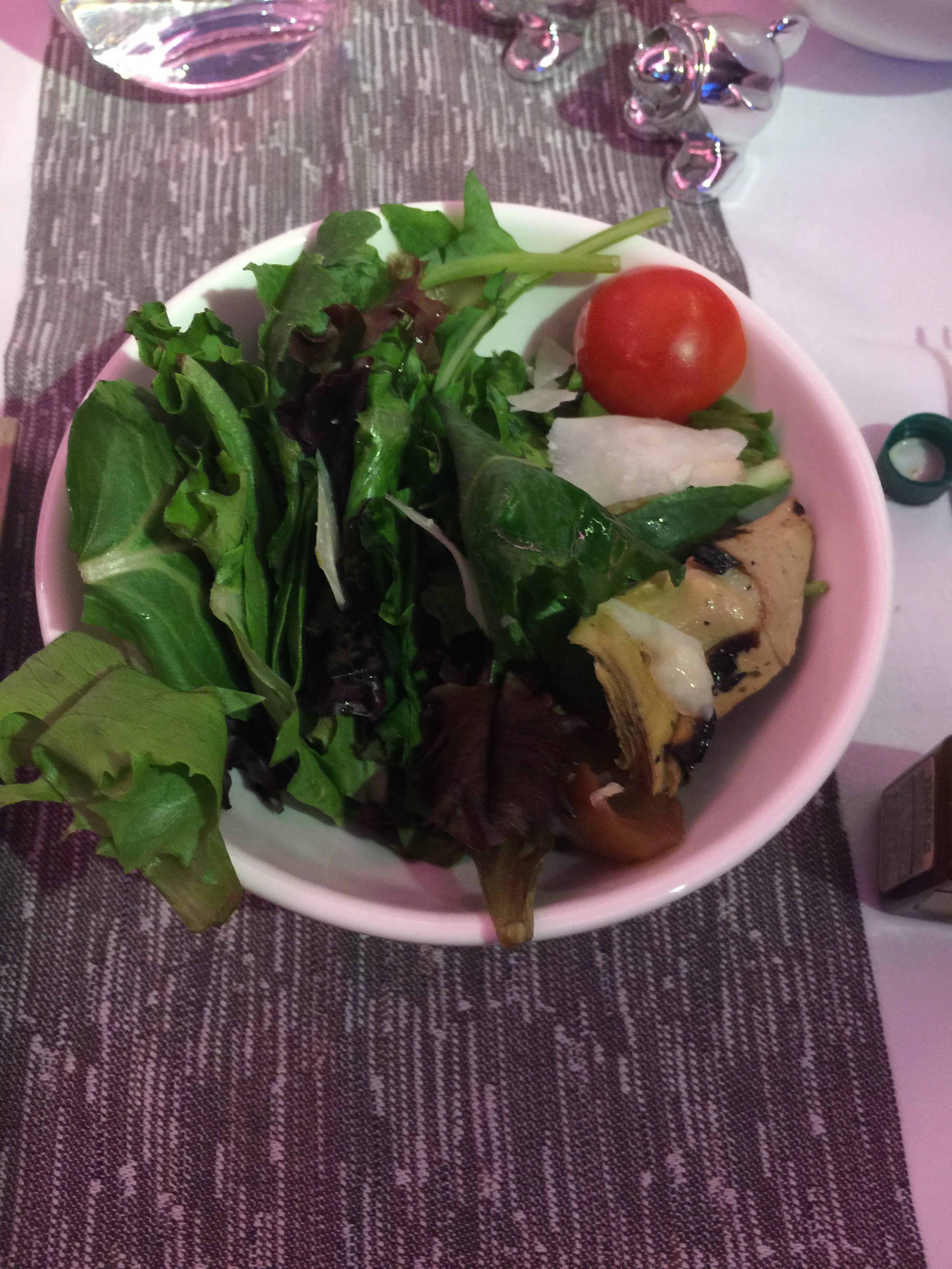 There were two appetizer options: soup or crab salad, alongside a small side salad. I ordered the soup. At this point I was so hungry, that I forgot to take a photo of the soup. It was good, not the best tomato or lentil soup I have ever had, but good enough to what you would expect by non-ME3 carrier standards.